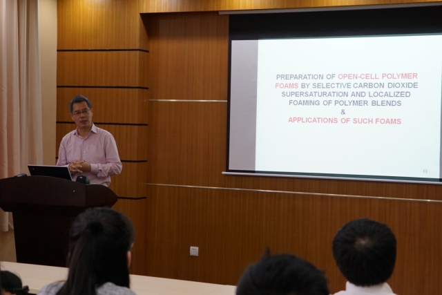 胡國華介紹了聚丙烯開孔發(fā)泡材料的制備與應(yīng)用,強調(diào)指出此類材料不僅可以用在汽車制造業(yè)中使其輕量化,減少環(huán)境污染,而且還具有很強的吸油性,可進行油水處理。他還結(jié)合自身經(jīng)歷,用幽默的話語以及生動的實例告訴學(xué)生要想深入進行科學(xué)研究,第一就是要對周圍充滿好奇心,其次大膽的提出假設(shè),然后進行深思,建立理論模型,最后再去驗證。