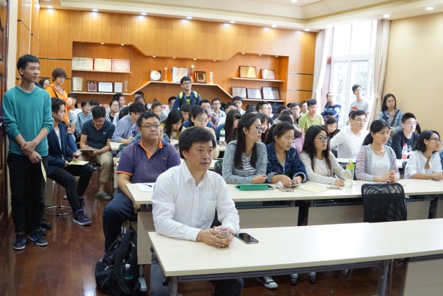 隨后,與會師生就感興趣的內(nèi)容進行了提問,胡國華一一作了詳細解讀,并介紹了法國大學(xué)的教學(xué)模式與方法,鼓勵學(xué)生在科研方面要勤于思考,保持對待科研的熱情。