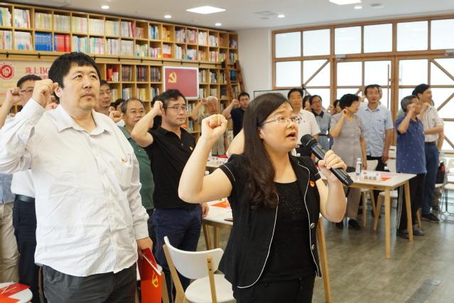 交流分享后,全體教師在袁媛的領(lǐng)誓下重溫入黨誓詞,銘記自己永遠(yuǎn)的政治身份。