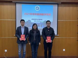 18名參賽青年教師有的是剛剛站上講臺(tái),有的已經(jīng)具有5-6年豐富的教學(xué)經(jīng)驗(yàn),還有不少是剛剛完成了1-2輪的教學(xué),對(duì)教學(xué)設(shè)計(jì)正在進(jìn)行琢磨提升。他們教授的內(nèi)容涵蓋了從物理、化學(xué)到材料的各個(gè)方面,教學(xué)風(fēng)格多樣,在10分鐘的教學(xué)展示中呈現(xiàn)了各具特色的精彩課程節(jié)段。最后徐彬彬、李宇航老師以其親切的教態(tài),豐富的教學(xué)內(nèi)容,精致的教學(xué)課件獲得了一等獎(jiǎng);管夢(mèng)佳、王立權(quán)、甘琪、和唐均坤分別獲得二等獎(jiǎng),學(xué)院黨委書記袁媛為獲得一等獎(jiǎng)的教師頒發(fā)了證書。