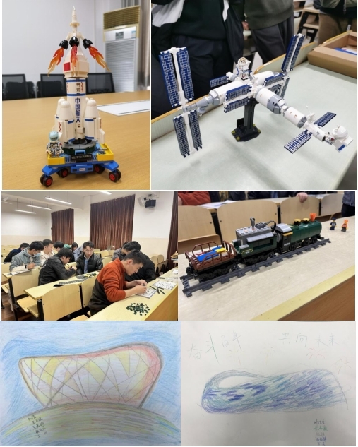 第5組搭建長(zhǎng)征二號(hào)運(yùn)載火箭模型和載人空間站模型,發(fā)揚(yáng)“特別能吃苦、特別能戰(zhàn)斗、特別能攻關(guān)、特別能奉獻(xiàn)”的載人航天精神。第11組拼裝火車積木,學(xué)習(xí)“吃苦、創(chuàng)業(yè)、團(tuán)結(jié)、奉獻(xiàn)”的老青藏線精神。第6組繪制2008年奧運(yùn)和2022年冬奧會(huì)的標(biāo)志場(chǎng)館畫,傳承“為國爭(zhēng)光、無私奉獻(xiàn)、科學(xué)求實(shí)、遵紀(jì)守法、團(tuán)結(jié)協(xié)作、頑強(qiáng)拼搏”的中華體育精神。第7組制作長(zhǎng)征故事剪紙,用剪紙藝術(shù)傳承長(zhǎng)征精神。第9組制作南昌起義主題模型,學(xué)習(xí)繼承不畏強(qiáng)敵,前赴后繼的革命精神。