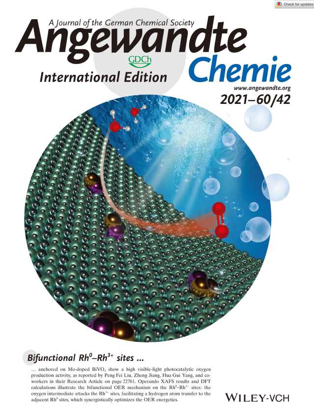 近日,國(guó)際知名學(xué)術(shù)期刊《Angew. Chem. Int. Ed.》以“Boosting Photocatalytic Water Oxidation Over Bifunctional Rh0-Rh3+ Sites”為題,在線報(bào)道了我校材料科學(xué)與工程學(xué)院清潔能源材料與器件團(tuán)隊(duì)在人工光合成領(lǐng)域的最新研究成果,并以內(nèi)封面文章的方式重點(diǎn)報(bào)道。