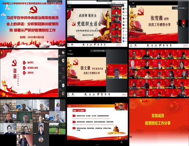 為充分發(fā)揮基層黨組織力量,學院黨委認真組織各黨支部召開疫情防控專題組織生活會。學院領導班子成員和黨務工作者,根據(jù)與師生黨支部對接全覆蓋的實施方案,深入支部一線,引導師生深入學習上海市疫情防控政策、學校防疫相關(guān)文件精神和具體措施,認清疫情防控形勢,同時傾聽師生心聲和需求。教師黨支部結(jié)合“助力清單”集思廣益,助力疫情防控,分享先進事跡、匯聚溫暖力量。學生黨支部圍繞嚴守疫情防控紅線、做校園守護者、珍惜志愿勞動成果、志愿經(jīng)驗分享、陽光心態(tài)等開展討論。師生黨員在活動中進一步明晰黨支部和黨員的責任和義務,弘揚正能量。