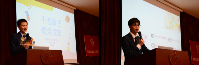 大會(huì)第二階段是“學(xué)思踐悟二十大 五四精神薪火傳”主題宣講,第一期宣講以《奉獻(xiàn)為先,奮斗以恒》為主題。校大學(xué)生年度人物提名獎(jiǎng)獲得者、材料學(xué)院學(xué)生會(huì)主席團(tuán)成員陳仕林從志愿服務(wù)中的點(diǎn)滴細(xì)節(jié)著手,用生動(dòng)的案例向同學(xué)們講述志愿服務(wù)的苦與累、收獲與滿足。校學(xué)委會(huì)主任、材料學(xué)院學(xué)委會(huì)主任張啟航講述了在春暉支教項(xiàng)目中的所見所聞、所思所想,以及大學(xué)生科創(chuàng)與競(jìng)賽方面的經(jīng)驗(yàn)與建議。團(tuán)學(xué)骨干們精彩的宣講,深刻闡釋了奉獻(xiàn)與奮斗對(duì)當(dāng)代大學(xué)生的意義和價(jià)值,展示了材料學(xué)院青年學(xué)子的風(fēng)采和擔(dān)當(dāng)。