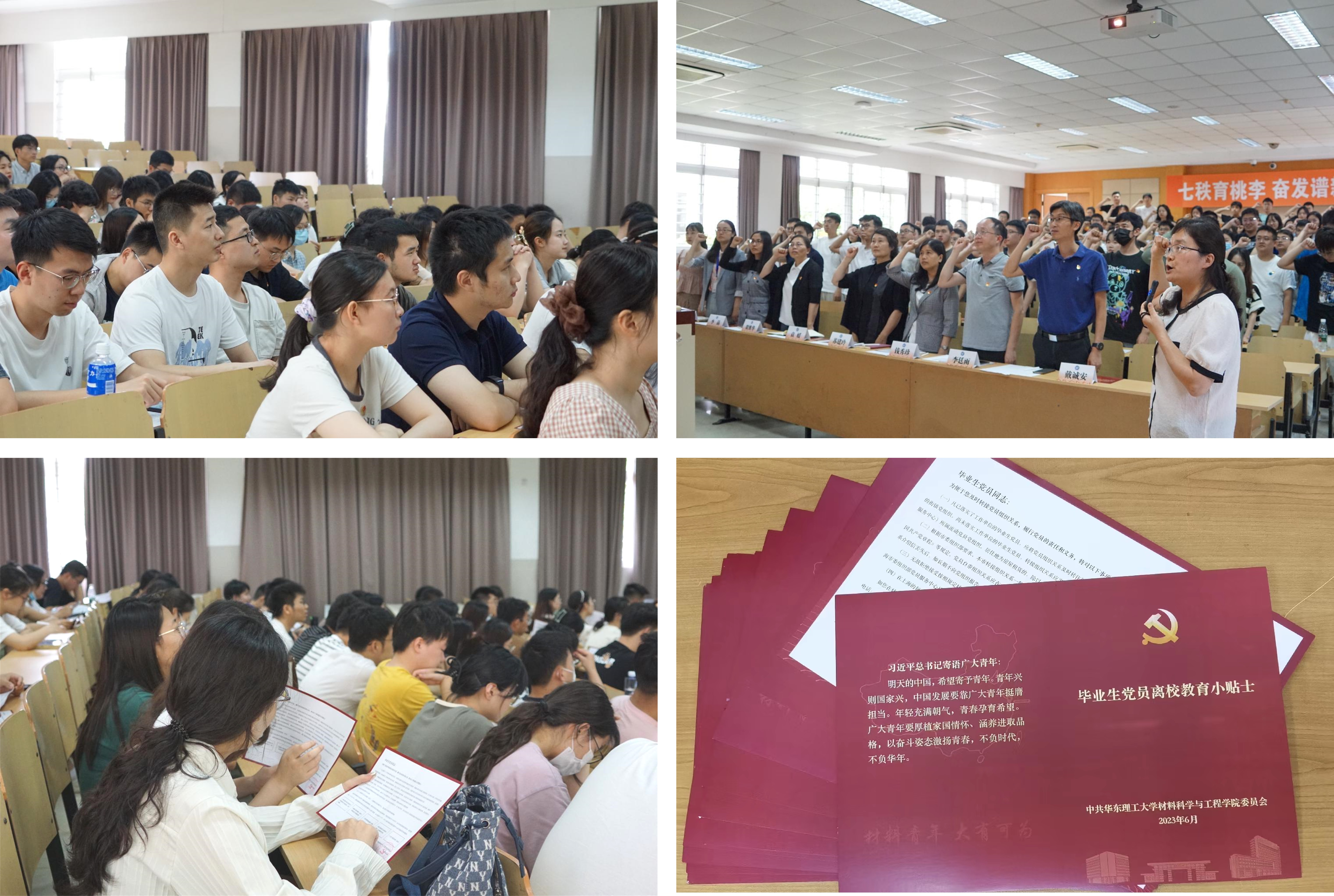 為深入開展學(xué)習(xí)貫徹習(xí)近平新時(shí)代中國特色社會主義思想主題教育,引導(dǎo)和鼓勵(lì)畢業(yè)生黨員堅(jiān)定理想信念,以良好的精神風(fēng)貌踏入新的征程,6月8日中午,材料科學(xué)與工程學(xué)院在徐匯校區(qū)八教107召開2023屆畢業(yè)生黨員離校教育大會。材料學(xué)院黨委書記袁媛、黨委副書記兼紀(jì)委書記蘇建玲、黨委副書記戴誠安、專職組織員、本研輔導(dǎo)員、黨建兼職輔導(dǎo)員及全體畢業(yè)生黨員參會。會議由戴誠安主持。
