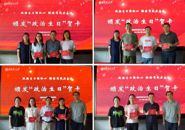 隨后,袁媛、蘇建玲、陳濤為黨齡10年、15年、20年、25年、30年的教師頒發(fā)“政治生日”賀卡。