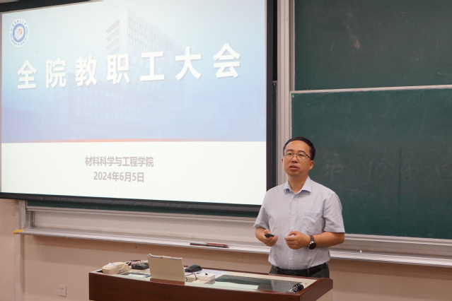 6月5日,材料科學(xué)與工程學(xué)院召開全院教職工大會。學(xué)院黨政班子成員及全體教職工參加會議。材料學(xué)院黨委書記袁媛主持會議。會議分為學(xué)院工作匯報和黨紀學(xué)習(xí)教育案例集中學(xué)習(xí)兩部分內(nèi)容。