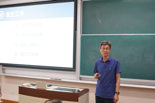 學(xué)院黨委副書記戴誠安介紹了近三年本科生和研究生的就業(yè)狀況,重點匯報了2024年的就業(yè)進展,從不同角度剖析了目前就業(yè)難點、堵點以及學(xué)院后續(xù)將采取的針對性舉措。