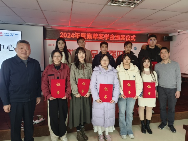 NICE-華昌聯(lián)合創(chuàng)新中心主任、華昌公司副總工程師錢建華博士介紹了華昌公司始終堅持聚合物新材料產(chǎn)業(yè)化工作,走“專精特新”發(fā)展之路,解決重點工程關(guān)鍵新材料卡脖子技術(shù)并實現(xiàn)產(chǎn)業(yè)化的歷程。蔡益民博士介紹了長三角國家創(chuàng)新中心積極以產(chǎn)業(yè)需求為課題,依托聯(lián)合創(chuàng)新中心,為產(chǎn)業(yè)發(fā)展持續(xù)提供技術(shù)創(chuàng)新、技術(shù)供給、技術(shù)服務(wù),設(shè)立了集萃獎學(xué)金,為社會培養(yǎng)了大批集萃研究生,希望為新材料科技成果轉(zhuǎn)化作貢獻。華昌公司副總工程師茆凌峰宣讀了2024年度集萃獎學(xué)金獲獎學(xué)生名單。本次獎學(xué)金面向NICE-華昌聯(lián)合創(chuàng)新中心與華東理工大學(xué)聯(lián)合培養(yǎng)的研究生,共資助材料學(xué)院54位研究生(11名博士生、43名碩士生)。長三角國家創(chuàng)新中心、華昌公司領(lǐng)導(dǎo)為獲獎學(xué)生頒發(fā)榮譽證書。