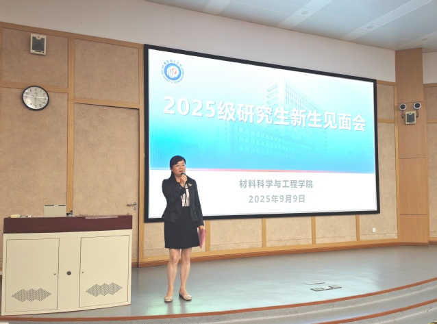 袁媛代表學院致辭,歡迎新同學加入材料學院大家庭。她談到,學校響應(yīng)國家戰(zhàn)略需求,縱深推進現(xiàn)代化、數(shù)智化、綠色化、國際化“四化”發(fā)展戰(zhàn)略和新能源新材料、大健康大安全“兩新兩大”發(fā)展布局,結(jié)合實例強調(diào)了材料學科對推動各領(lǐng)域創(chuàng)新發(fā)展的重要性。她對即將踏上科研征程的新生們有三點寄語:一要志存高遠、心懷家國,將個人科研理想融入國家發(fā)展大局;二要勇于創(chuàng)新、敢于突破,在科研的道路上保持敏銳的洞察力和大膽的想象力;三要嚴謹篤實、厚積薄發(fā),以一絲不茍的精神面對科研中的每一個細節(jié)。