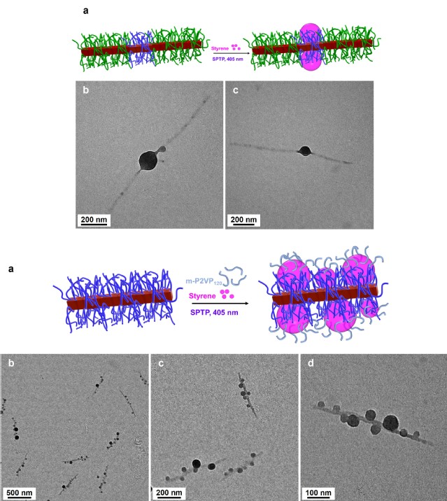 近日,我校材料學院Gerald Guerin教授團隊首次提出以結晶驅動自組裝(CDSA)所得到的膠束作為骨架,進一步利用聚合誘導自組裝(PISA)來實現(xiàn)“棒上長珠”的高維度結構制備。相關成果以“Crystallization-Driven Self-Assembly-Substrated-Polymerization-Induced Self-Assembly (CDSA-s-PISA). Toward the Next Generation of Supercarriers.”發(fā)表于Angewandte Chemie International Edition。