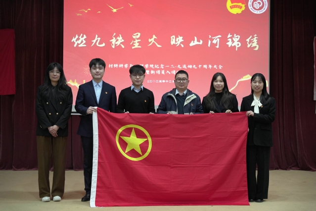 為傳承紅色基因,賡續(xù)紅色血脈,激勵青年學(xué)子勇?lián)鷷r代使命,12月2日下午,材料科學(xué)與工程學(xué)院在奉賢校區(qū)敬賢堂隆重舉行“燃九秩星火 映山河錦繡”紀(jì)念“一二·九”運(yùn)動九十周年大會暨新團(tuán)員入團(tuán)儀式。中共四大紀(jì)念館團(tuán)支部書記俞盧江,宣教專員孫露依、陳誠,材料學(xué)院黨委副書記胡寶林,團(tuán)委書記張雪薇,團(tuán)委副書記佘蘊(yùn)芮及學(xué)院團(tuán)員青年代表共同出席本次活動。