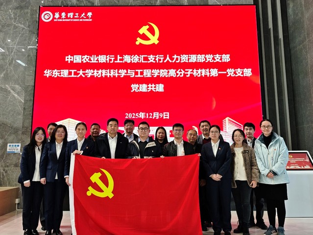 為深入學習貫徹黨的二十屆四中全會精神,深化黨建引領(lǐng)作用,12月9日,材料科學與工程學院高分子材料第一黨支部與中國農(nóng)業(yè)銀行(以下簡稱“農(nóng)行”)上海徐匯支行人力資源部黨支部在先進材料大樓522會議室舉行黨建共建活動。農(nóng)行上海徐匯支行紀委書記胡建兵、人力資源部黨支部書記鄭瑩、支部黨員劉穎捷、王嘉晴、陳果、王源,材料學院黨委副書記胡寶林、高分子材料第一黨支部書記林宇、支部黨員代表、黨政辦公室教師代表、專職組織員等參加會議,會議由林宇主持。